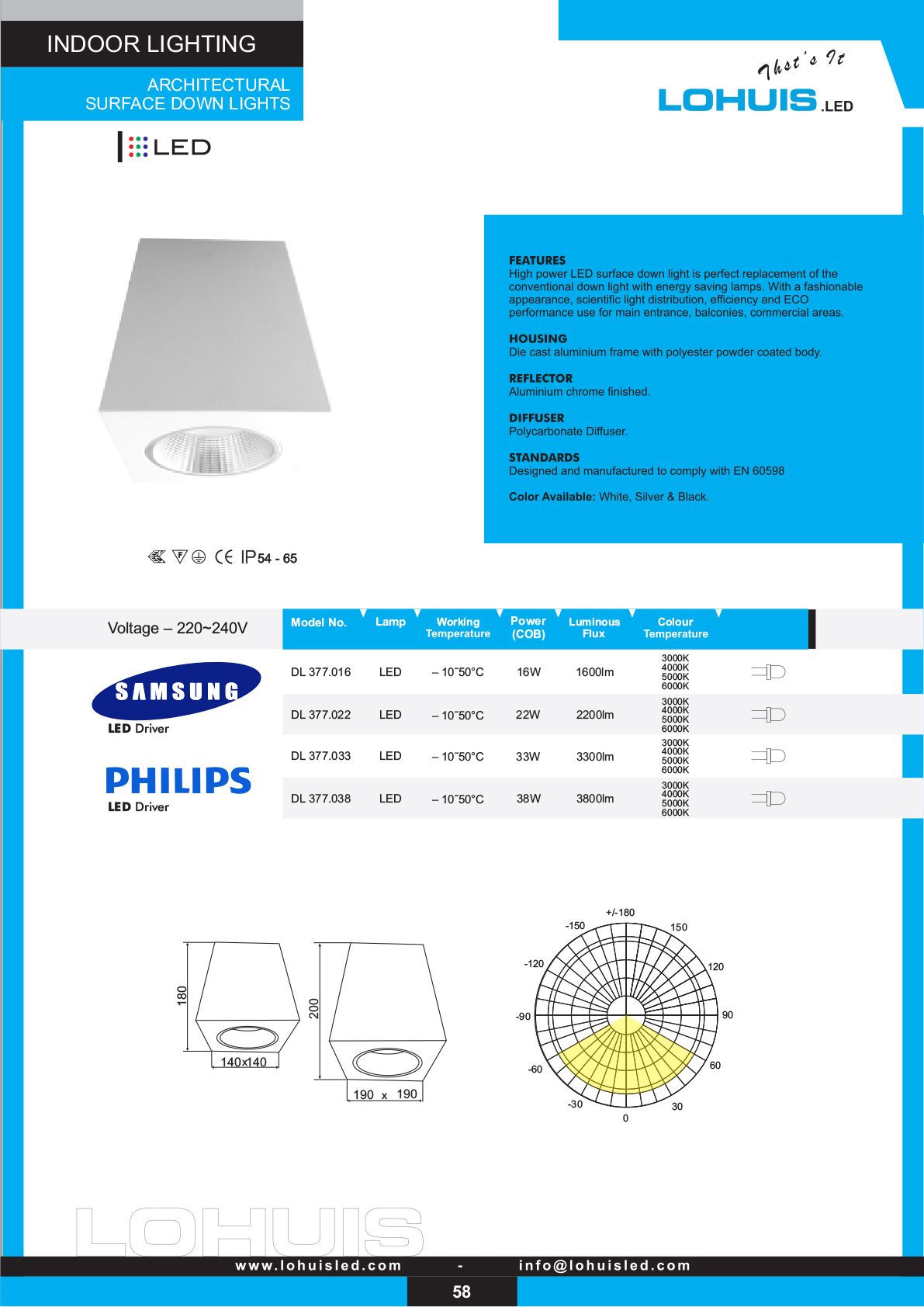 High power LED surface down light; replacement for conventional downlights; fashionable appearance; scientific light distribution; efficiency & ECO performance