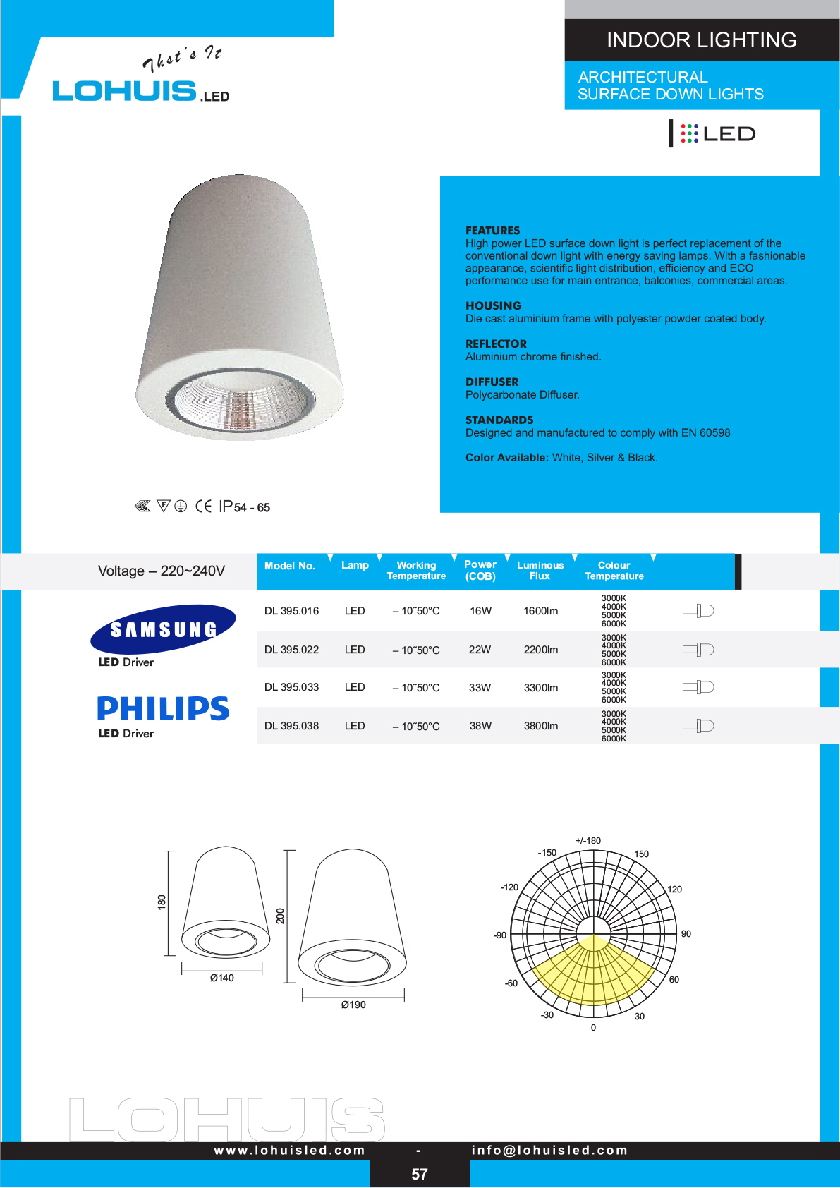 High power LED surface down light; replacement for conventional downlights; fashionable appearance; scientific light distribution; efficiency & ECO performance