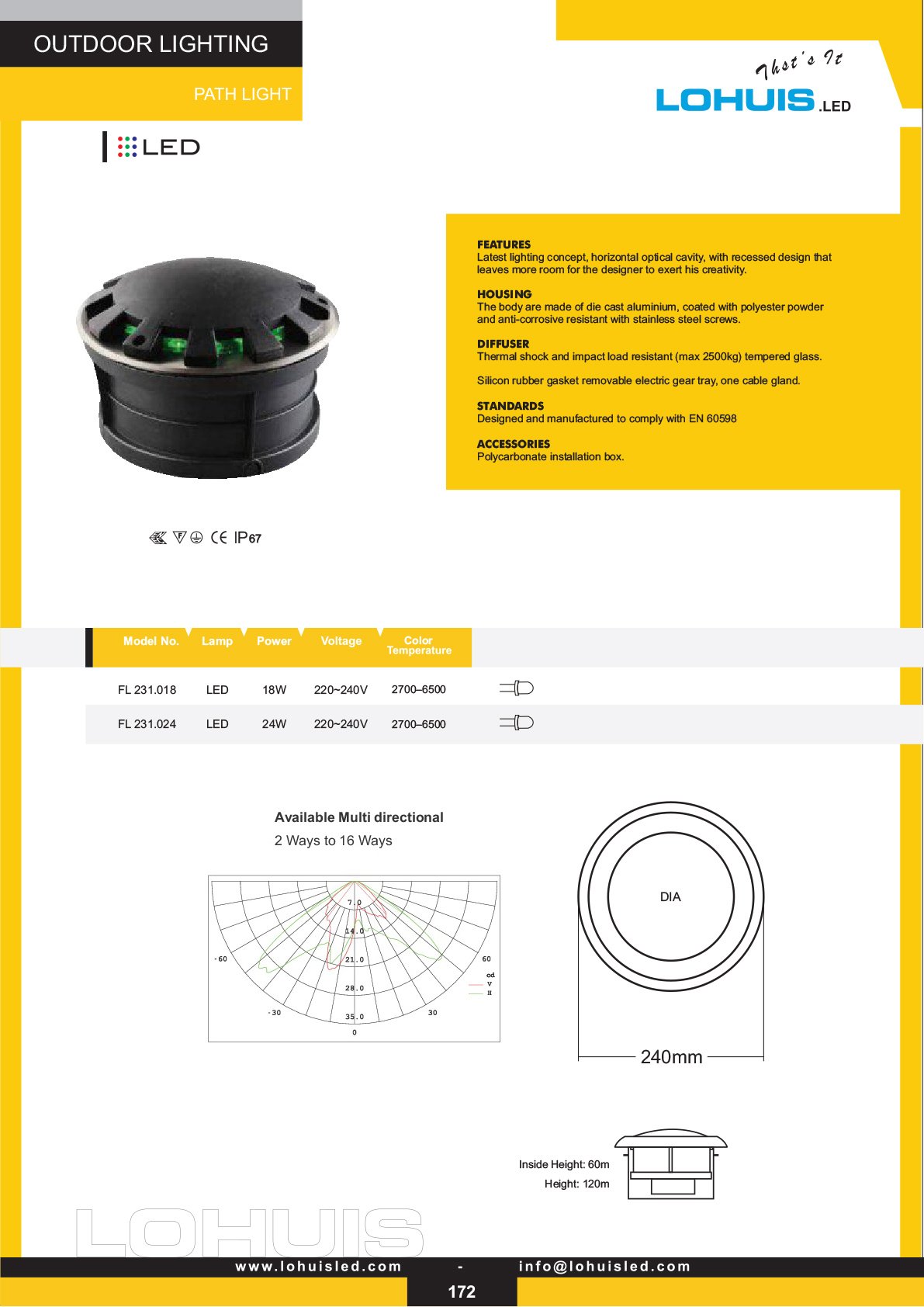 UsageApplication: Pathway/landscape lighting (multi-directional 2–16 ways)