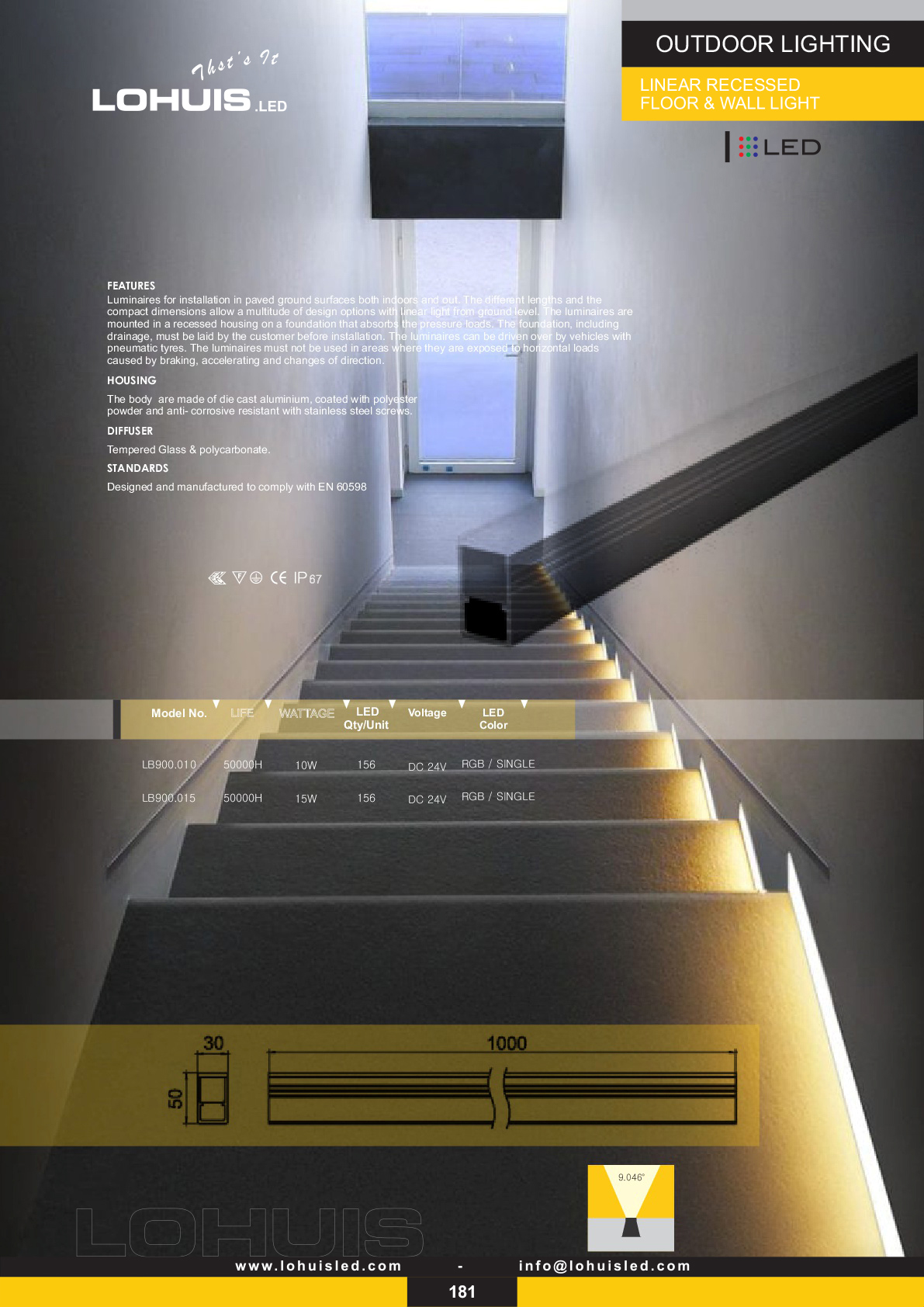 Features: Life 50,000 h; LED qty 156; DC 24V; LED color RGB / SINGLE; compact dimensions; recessed housing/foundation required; anti-corrosion build; designed to EN 60598