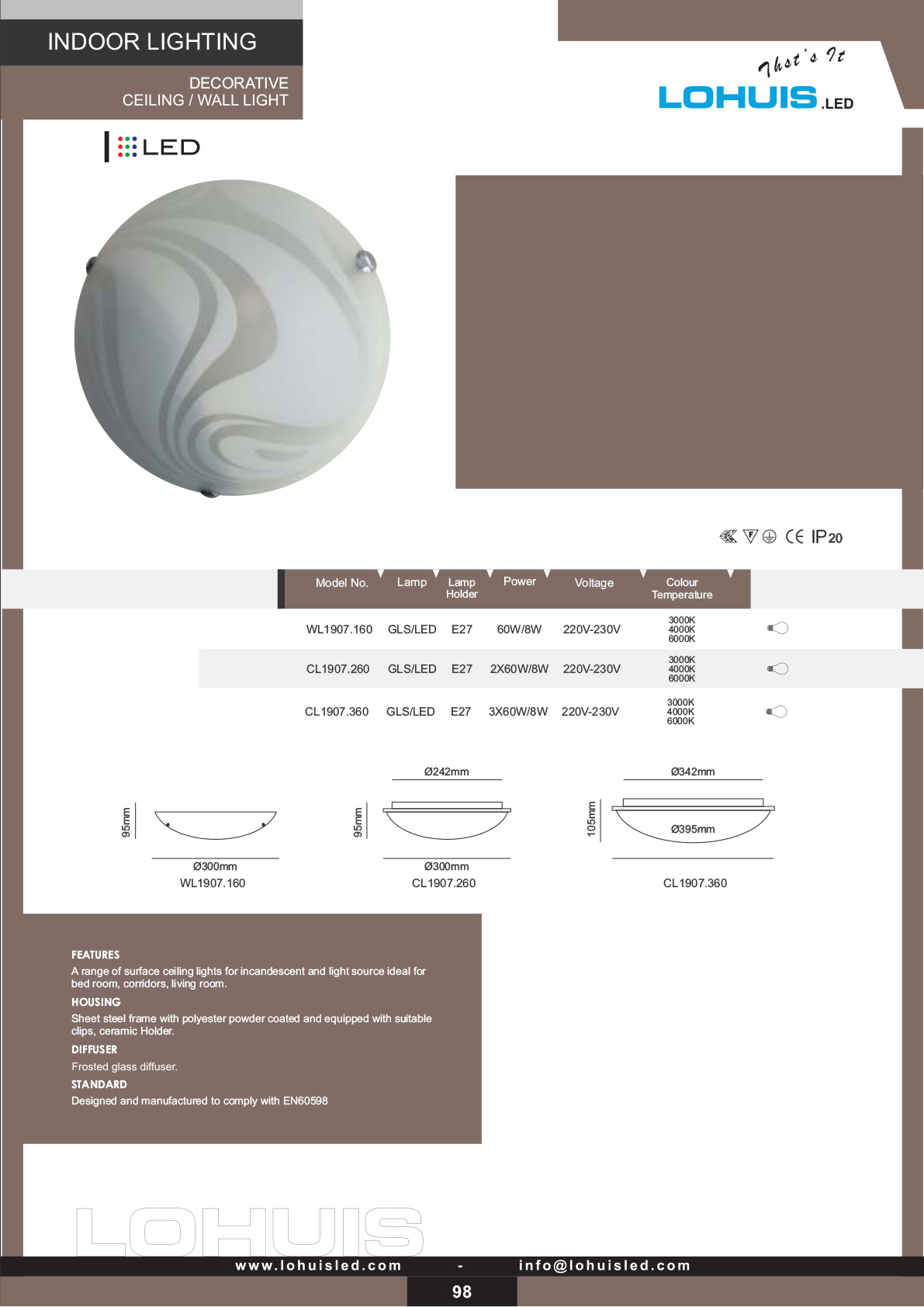 Housing: Steel Frame with polystercoated and equipped with suitableclips, ceramic holder