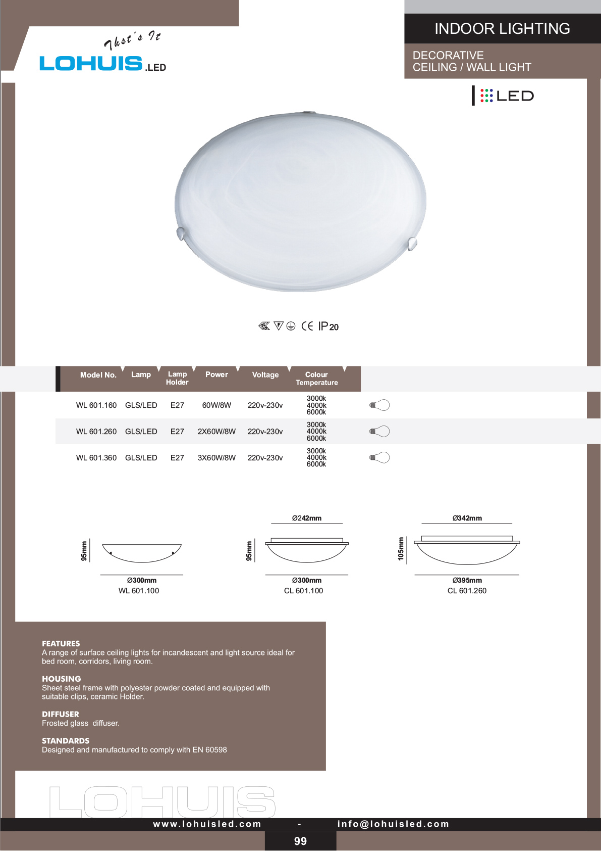 Housing: Steel Frame with polystercoated and equipped with suitableclips, ceramic holder